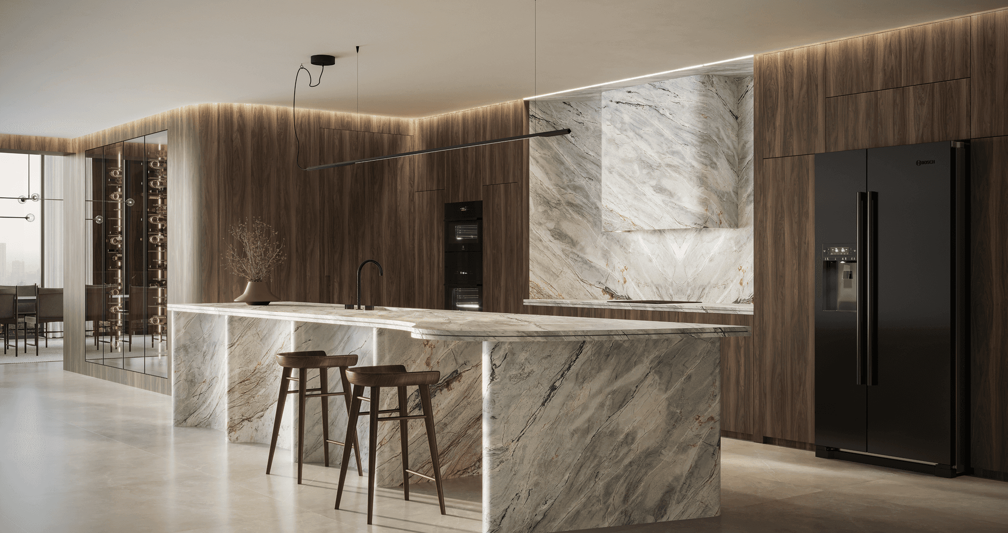 Ambientações exclusivas pensadas para valorizar materiais premium.